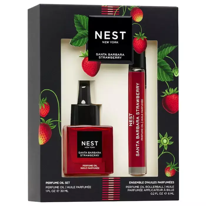 Disfruta un paseo por los campos de fresa bañados por el sol de Santa Bárbara con este dúo de Perfume Oil y Rollerball. La mezcla de fresa madura, peonía rosada y un toque cálido de almizcle solar crea un aroma dulce y luminoso, perfecto para llevar a cualquier parte.
